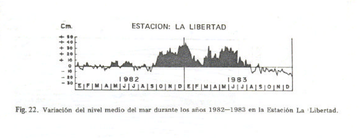 En el evento El Niño de 1982-1983 la estación mareográfica de La Libertad registró un aumento del nivel del mar de hasta 47 cm. (Moreano, Zambrano, de Suescum, & Paredes, 1986).